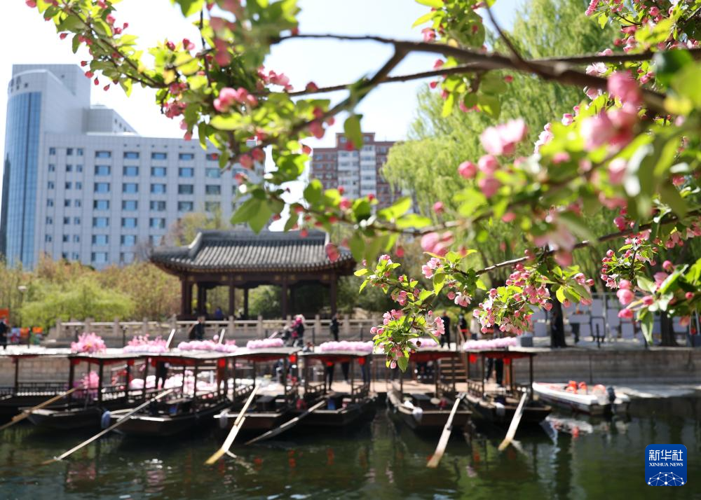 北京朝阳区亮马河边鲜花盛开(4月1日摄)。