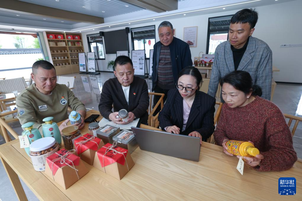 4月1日,安华镇包村干部和丰江周村村干部在共富工坊商讨红糖生产计划,提出包装改进建议。
