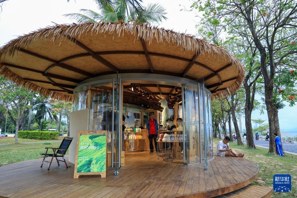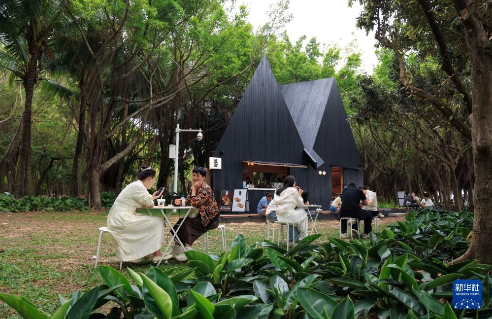 3月29日,游客在深圳湾公园设立的“公园BOX”享受饮品和食物。“公园BOX”是深圳设立的融合自然、艺术与轻商业的公园实验性项目,市民可以在欣赏艺术构筑的同时,体验轻餐饮与文创服务,感受新型公园生活场景的独特氛围。