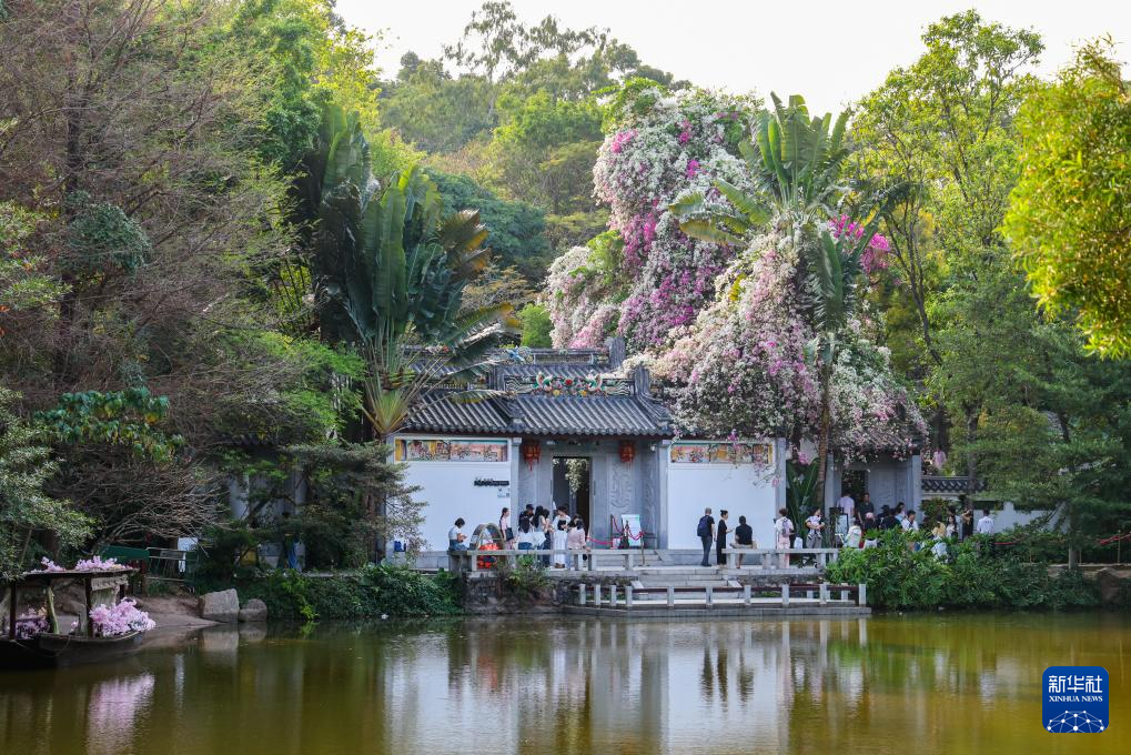 游客在深圳笔架山体育公园参观2026粤港澳大湾区花展。花展期间,公园联动商圈,为游客提供赏花、购物、住宿一站式体验(3月27日摄)。