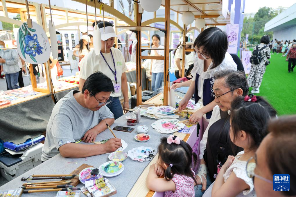 3月27日,游客在深圳笔架山体育公园2026粤港澳大湾区花展文创集市上购买文创产品。