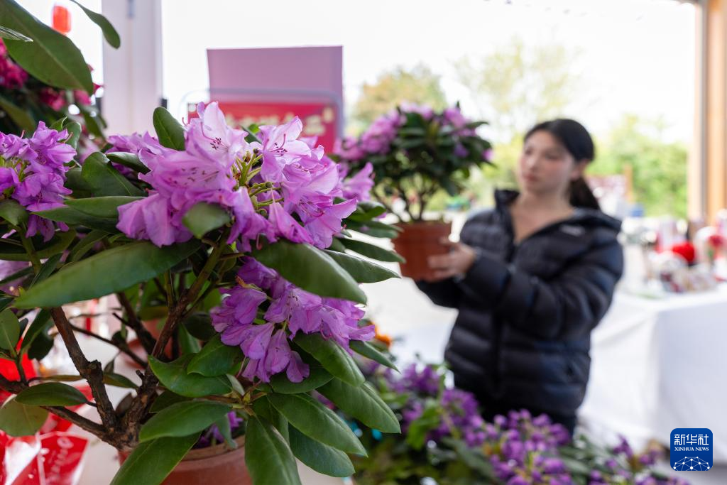 3月29日,游客在百里杜鹃景区一商店选购杜鹃花。