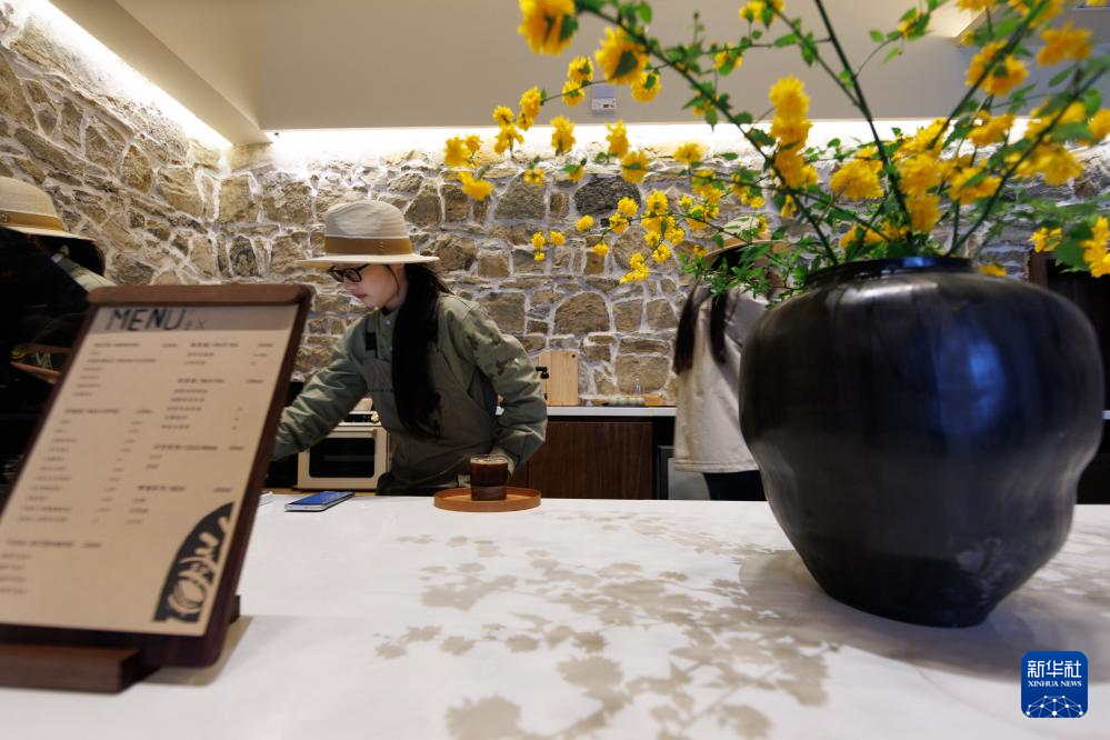 4月2日,百里杜鹃管理区普底乡迎丰村特色民宿内,工作人员在制作咖啡。