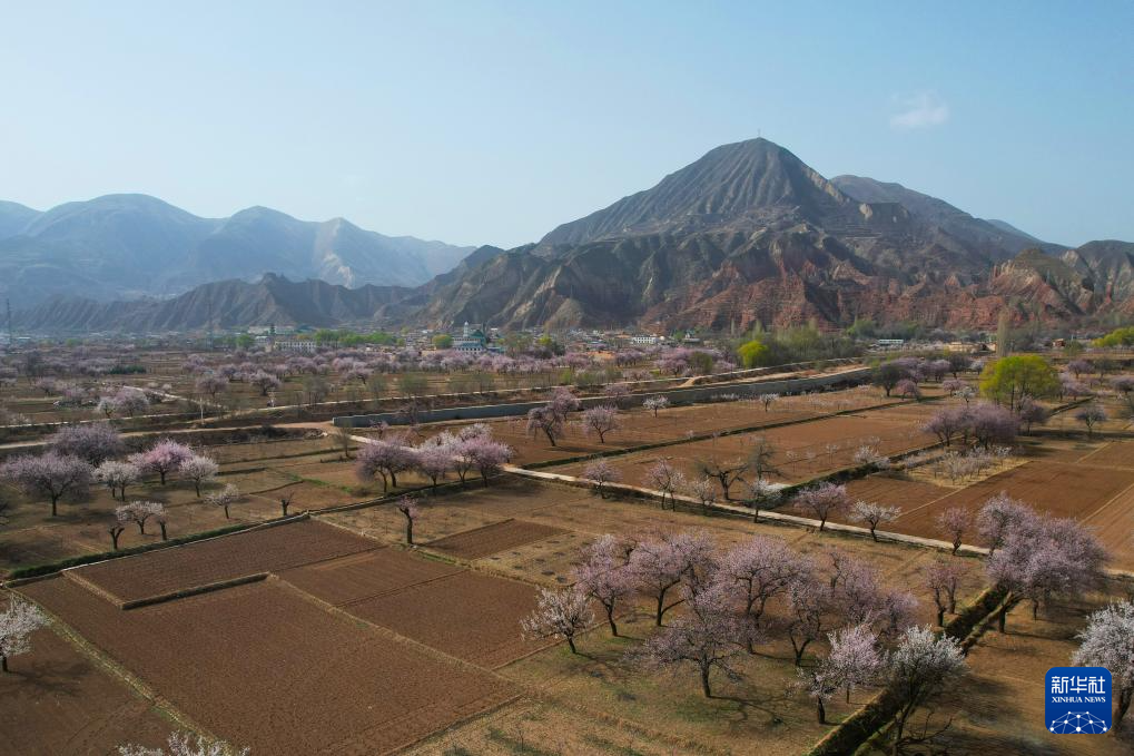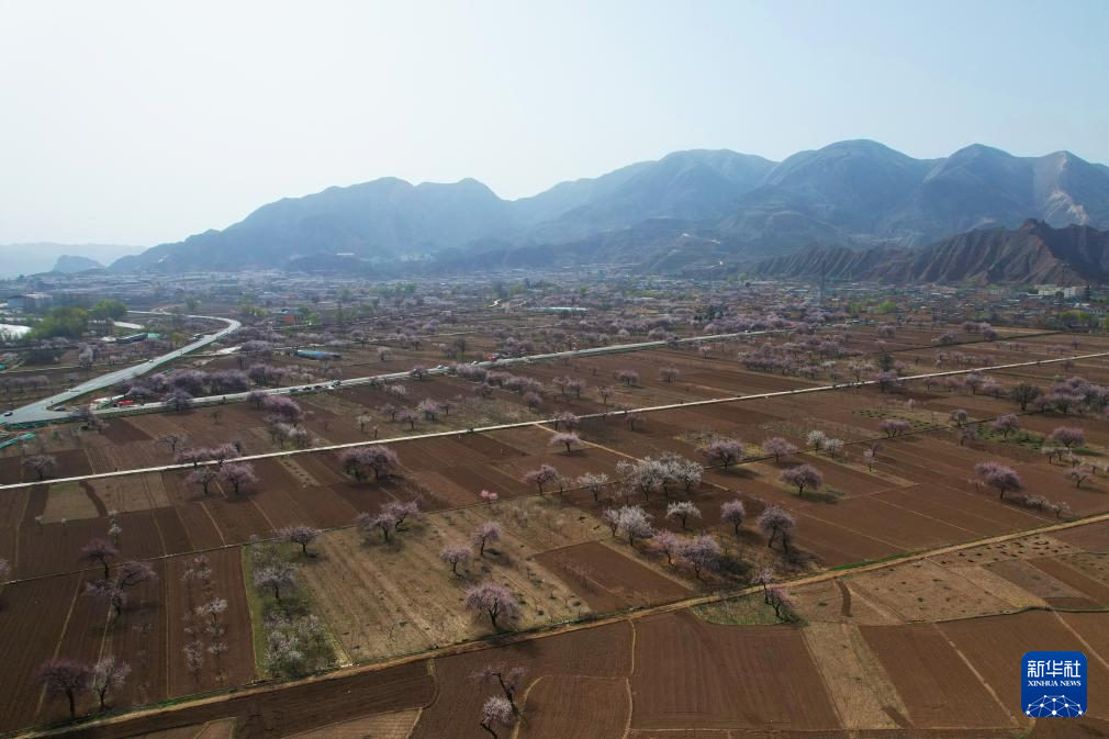 这是4月3日在甘肃省东乡县唐汪镇拍摄的杏园风光(无人机照片)。