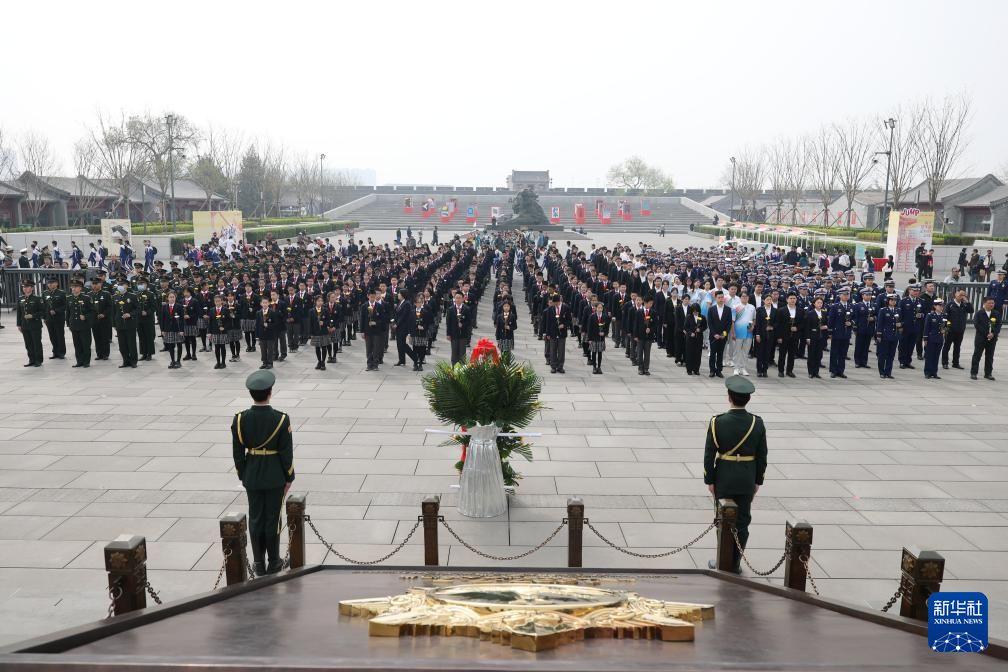 4月3日在中国人民抗日战争纪念馆拍摄的“清明节的铭记”主题教育系列活动启动仪式现场。