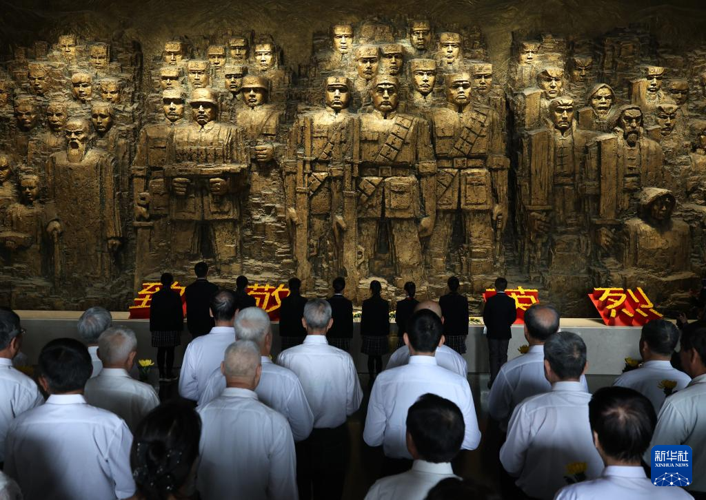 4月3日,参加活动的社会各界代表在中国人民抗日战争纪念馆向抗战英烈献花。