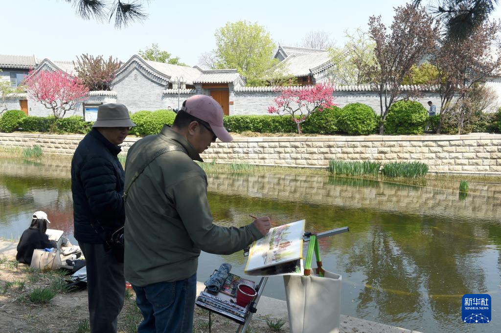 4月4日,在河南省焦作市博爱县人民公园,小朋友在写生。