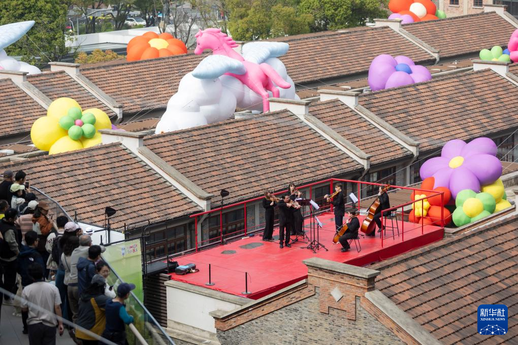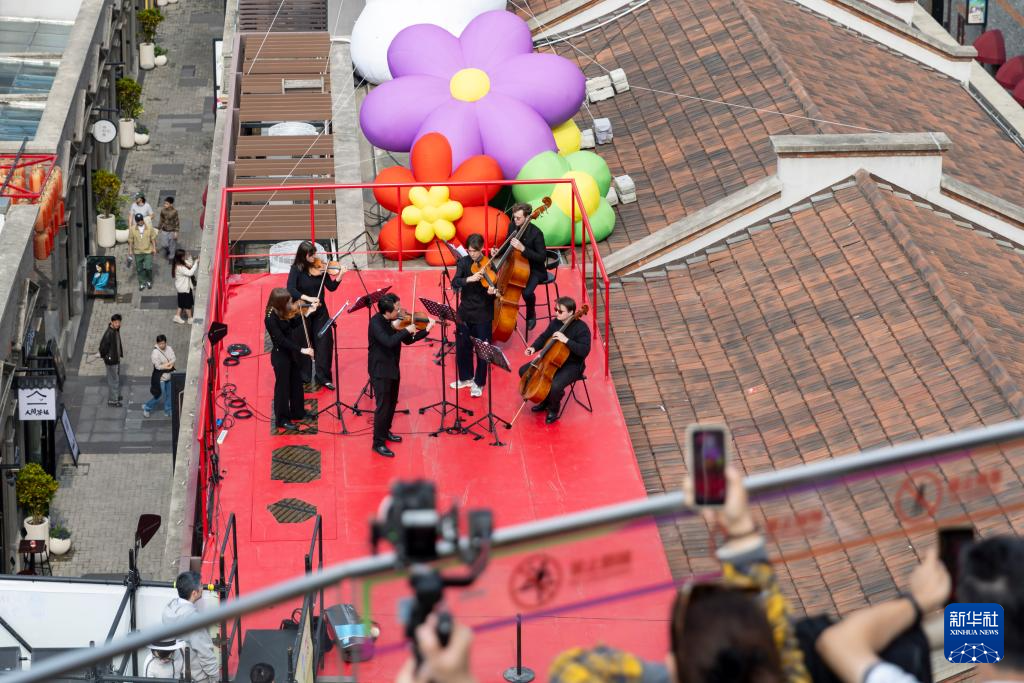 4月4日,第41届“上海之春”文艺轻骑兵惠民行虹口专场首场演出在“滨港商业中心今潮8弄”启幕。俄罗斯莫斯科国立柴可夫斯基音乐学院独奏家室内乐团来到百年弄堂屋顶演奏,为市民呈现沉浸式艺术盛宴。