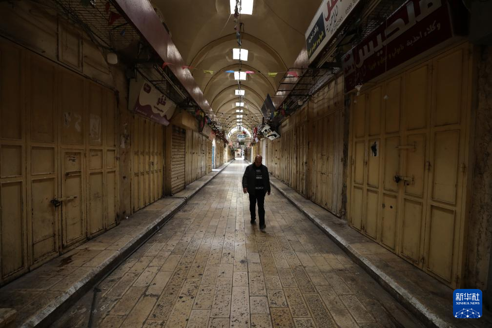这是4月1日在约旦河西岸北部城市纳布卢斯拍摄的关闭的店铺。