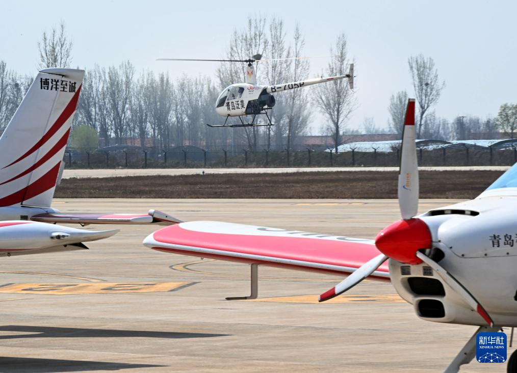 青岛泛美通用航空有限公司学员在学习直升机驾驶(4月2日摄)。