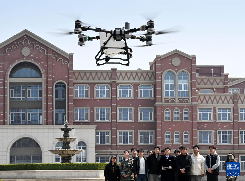 在位于青岛市低空经济提升区莱西片区内的青岛航空科技职业学院,学生在学习无人机操作(4月2日摄)。