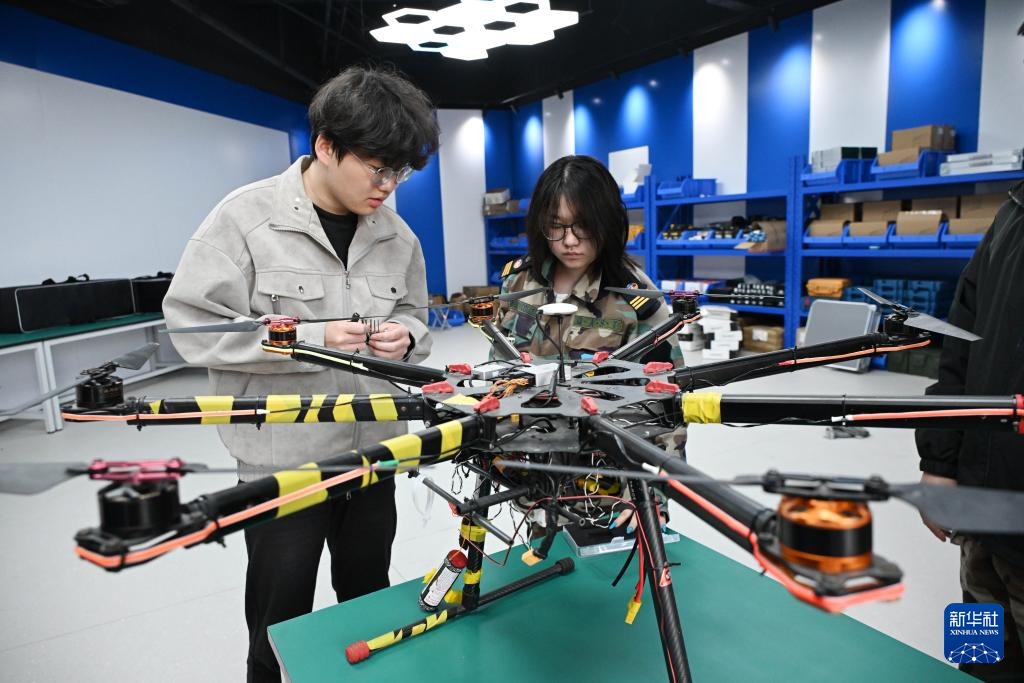青岛航空科技职业学院学生在学习无人机维修(4月2日摄)。