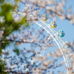 4月2日,在浙江省湖州市吴兴区,花朵与摩天轮相映成景。