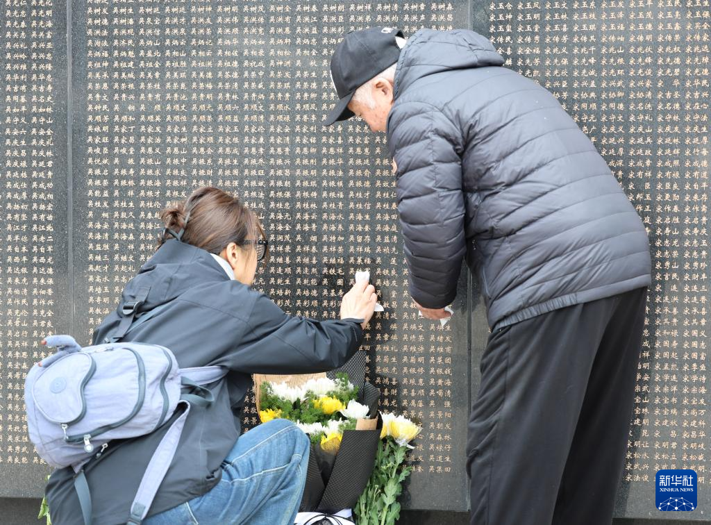 4月5日,烈士家属在沈阳抗美援朝烈士陵园擦拭烈士英名墙上的亲人名字。