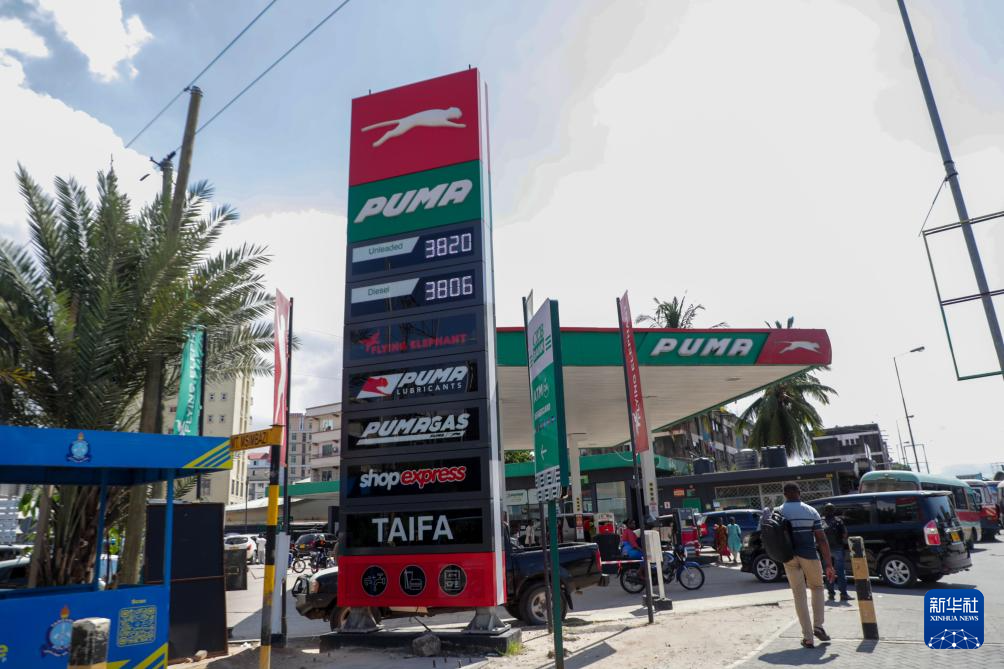 这是4月4日在坦桑尼亚达累斯萨拉姆拍摄的一处加油站的油价标牌。
