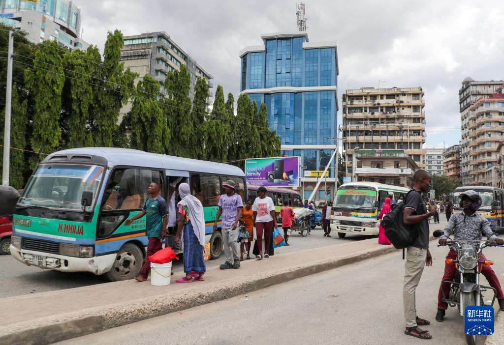 4月4日,在坦桑尼亚达累斯萨拉姆街头,人们搭乘小巴出行。