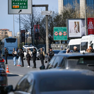 4月7日,在以色列驻土耳其伊斯坦布尔领事馆附近路口,交警在疏导车辆。