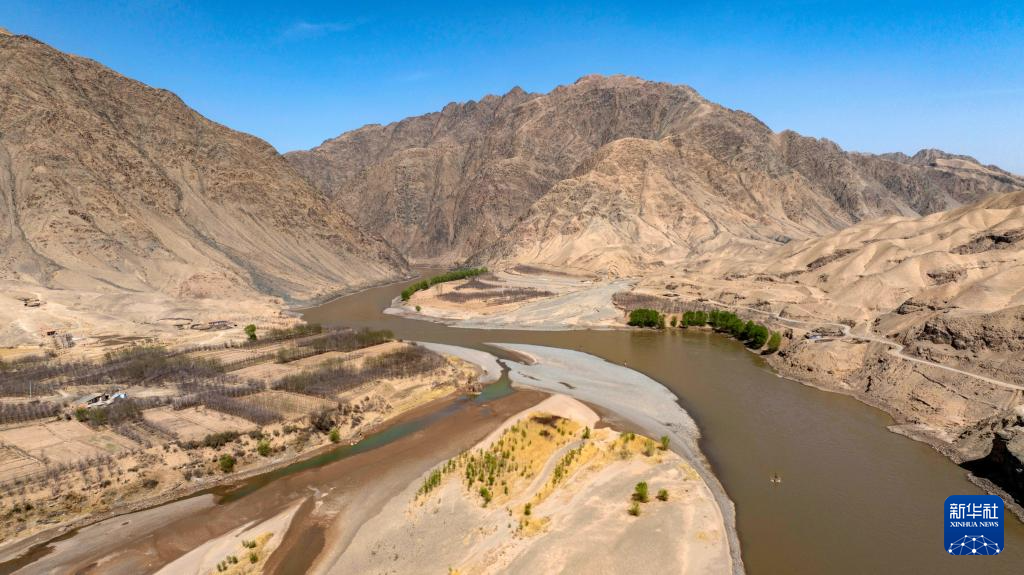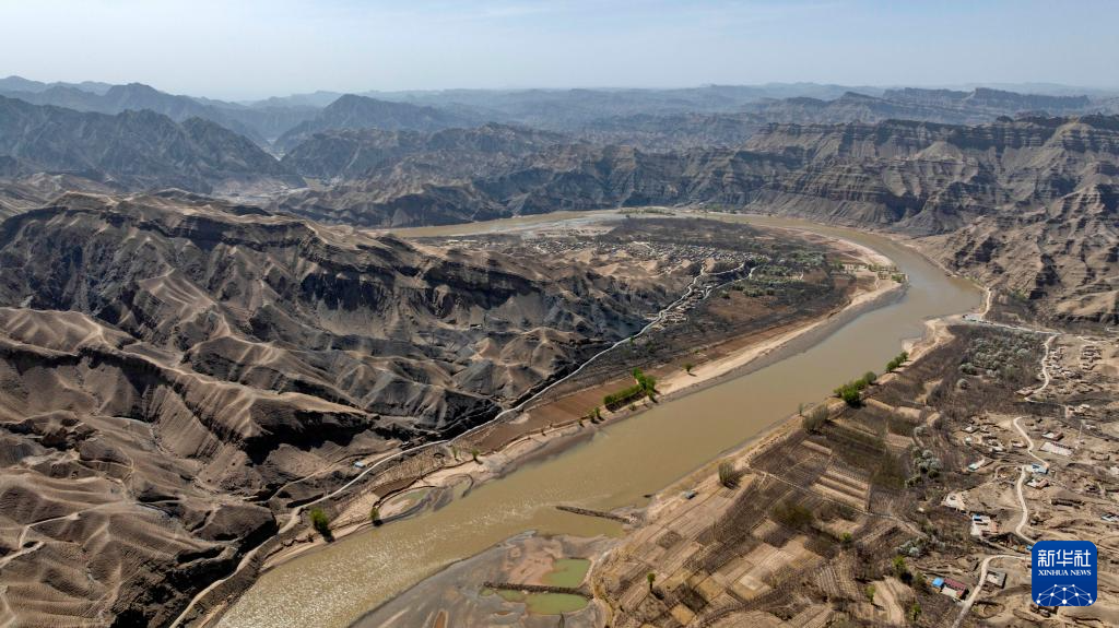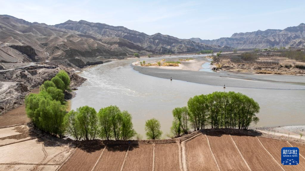 春日的宁夏中卫市南长滩村,黄河水蜿蜒流淌,岸边绿芽初绽,村里梨花竞相开放,勾勒出一幅生机盎然的黄河春景图。