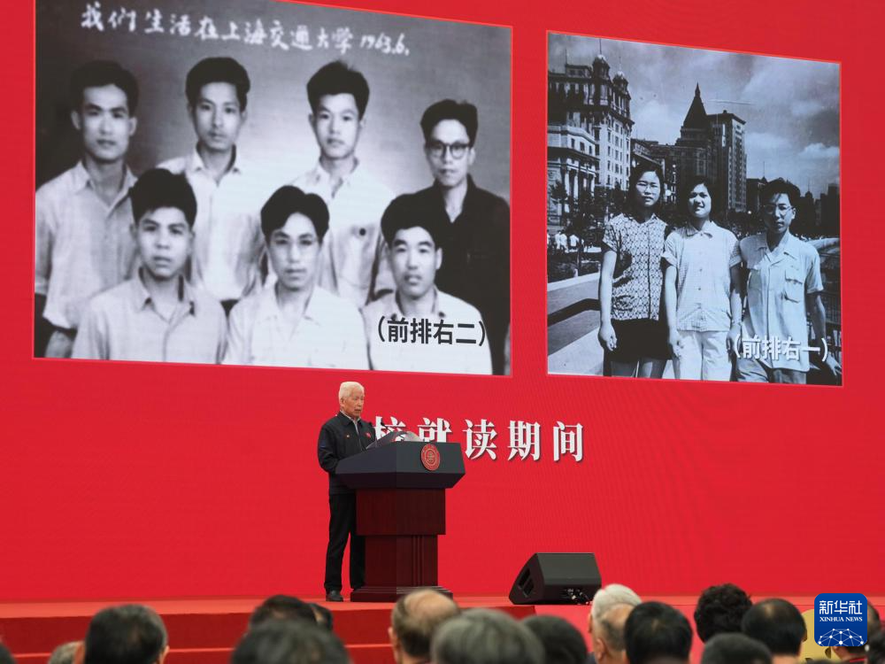 4月8日,校友代表、上海交大1963届校友龙乐豪讲述自己从“放牛娃”成长为“火箭总设计师”的奋斗历程。
