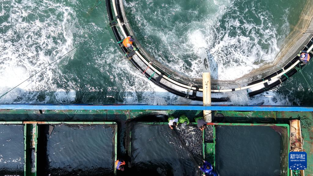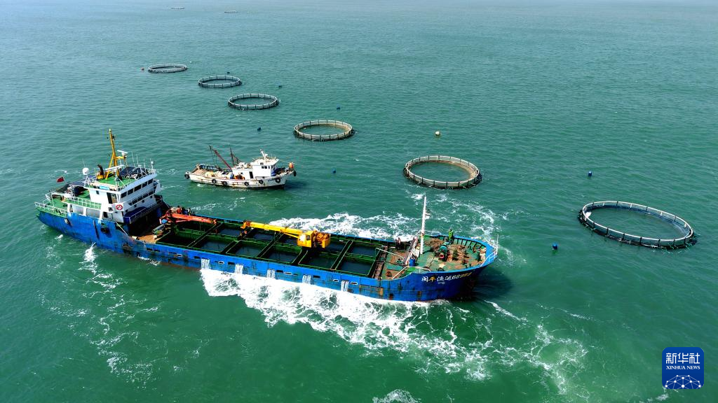 4月10日,山东青岛西海岸新区鲁海丰海洋牧场2026年首批10万尾鱼苗投入深水网箱进行养殖。据悉,青岛鲁海丰海洋牧场地处国家一类水质海域,水温适宜、盐度均衡,比较适宜海鱼生长。