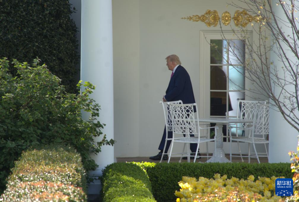 4月10日,美国总统特朗普准备乘直升机离开华盛顿白宫。