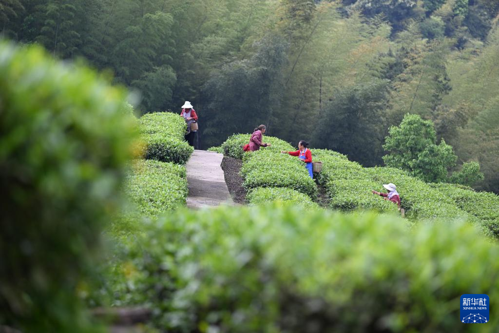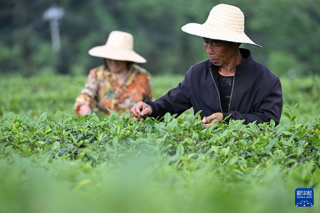 4月11日,茶农在重庆市永川区廖云祥茶树种植基地采茶。