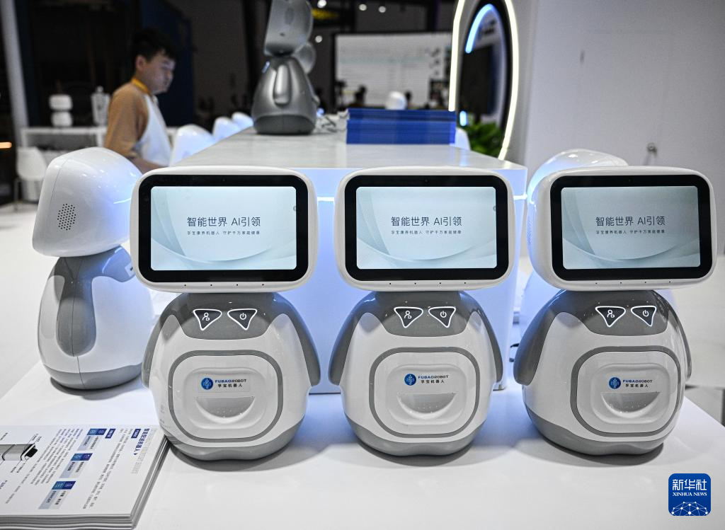 4月11日在第六届消博会主会场拍摄的康养陪伴机器人。