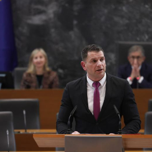 4月10日,在斯洛文尼亚首都卢布尔雅那,新任议长佐兰·斯特万诺维奇在新一届国民议会成立大会上发表讲话。