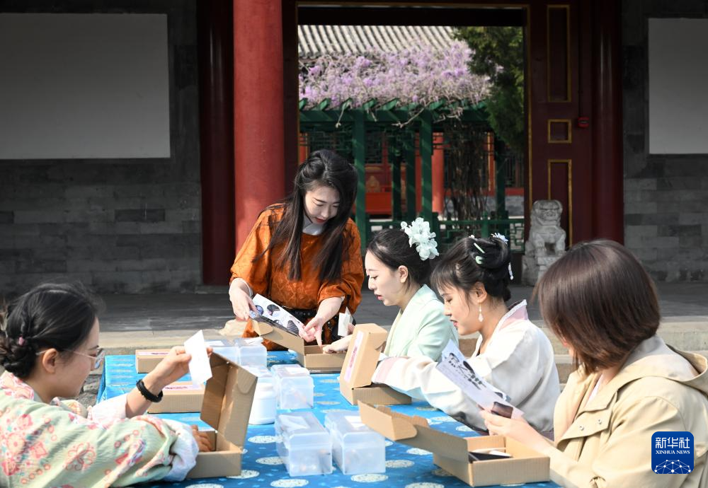 4月13日,观众在北京恭王府博物馆体验烫样制作。