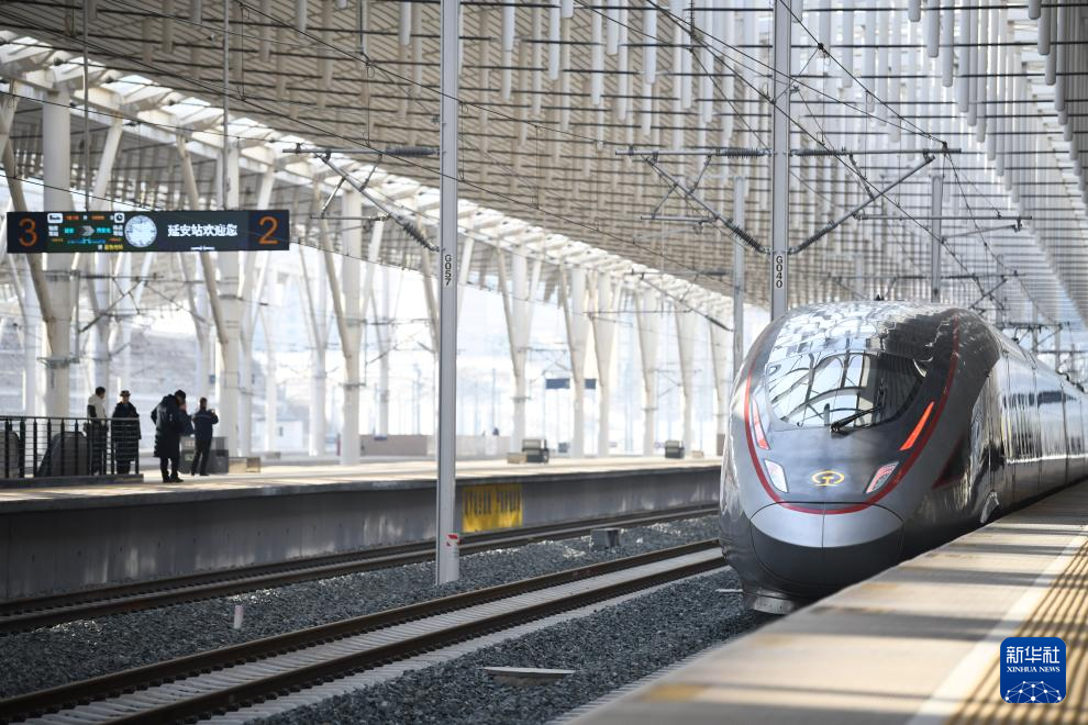 2025年12月26日,西延高铁首发列车从延安站驶出。