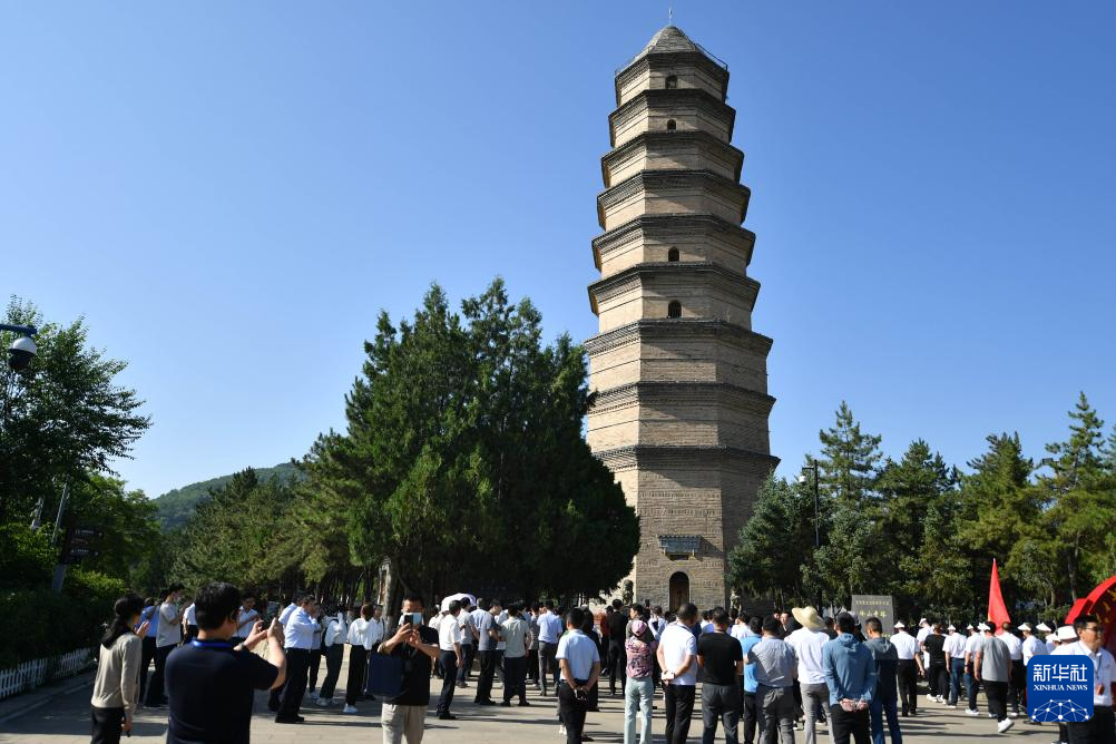 2023年6月30日,人们在延安宝塔山参观。
