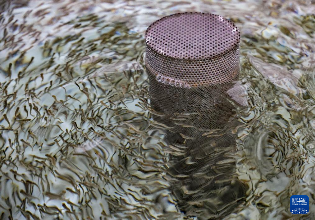 这是4月15日在吉林延边马苏大麻哈良种场繁育车间拍摄的鱼苗。