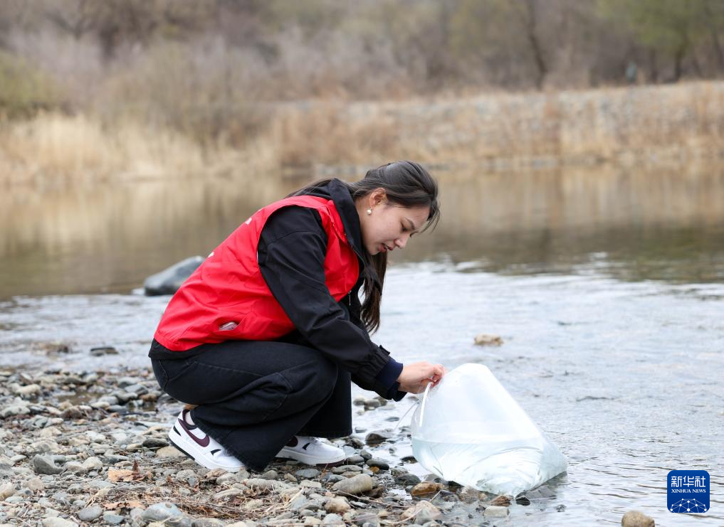 4月15日,大学生志愿者参与增殖放流活动。