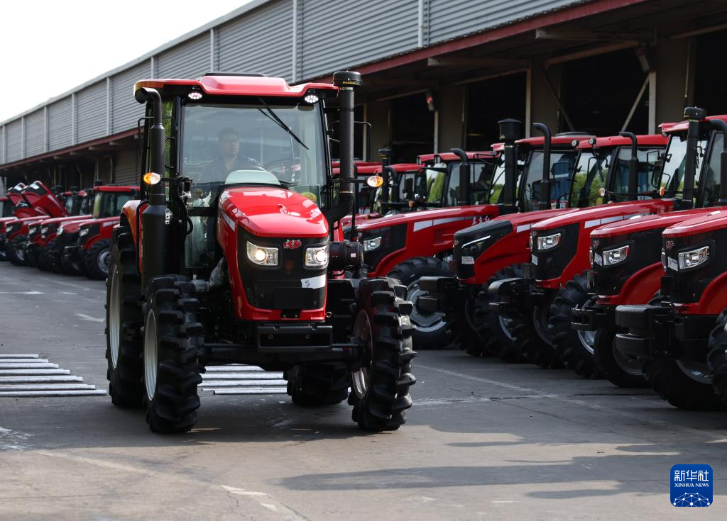 工人在位于河南洛阳的国机集团中国一拖大轮拖总装车间外试车(2026年4月14日摄)。