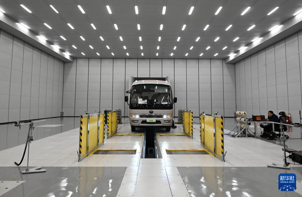技术人员在宇通振动噪声试验室内工作(2026年3月30日摄)。
