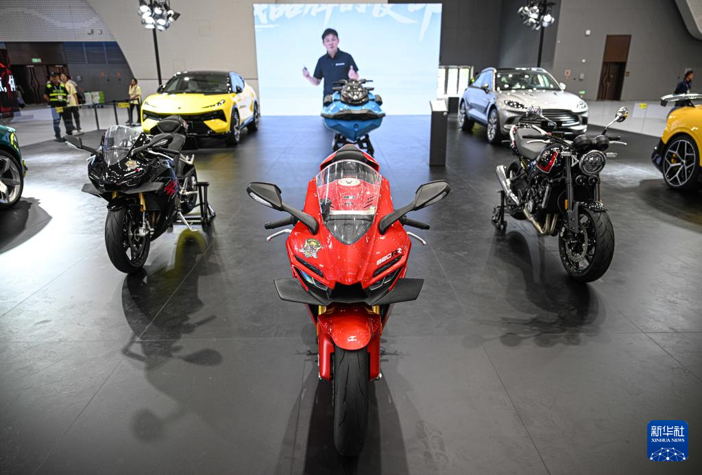 4月15日在第六届消博会上拍摄的张雪机车。
