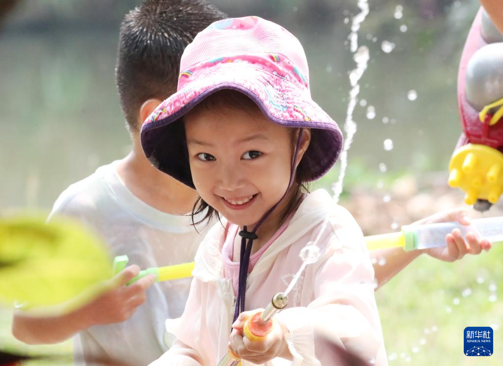 4月15日,小朋友参加泼水狂欢活动。