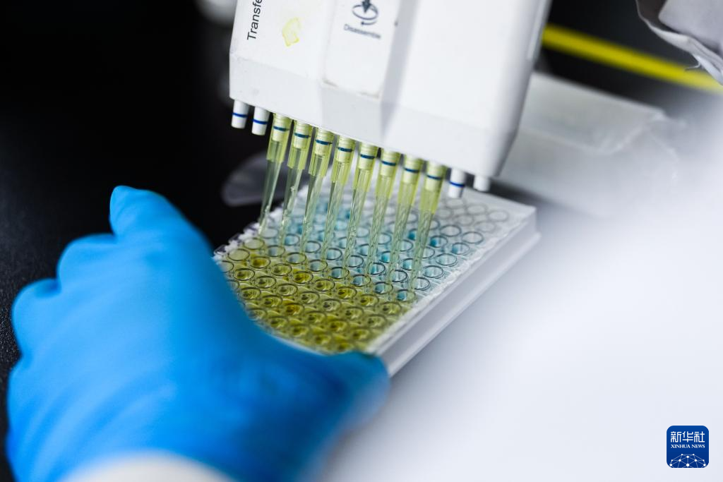 4月15日,在中国农业科学院兰州兽医研究所口蹄疫与新发病流行病学团队诊断间,科研人员在进行样本检测作业。