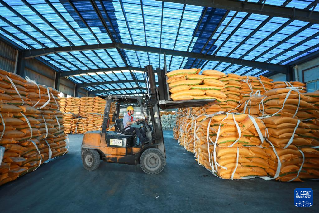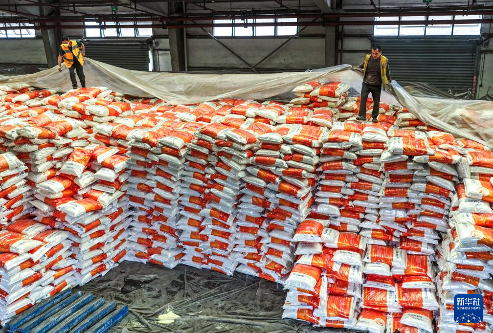 4月16日,工人在贵州省瓮安县一化肥生产企业转运化肥。