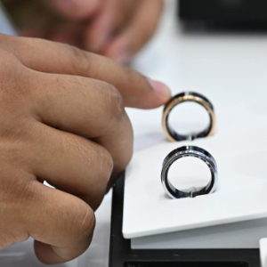 4月15日,境外采购商在广交会智能穿戴展区体验智能指环产品。
