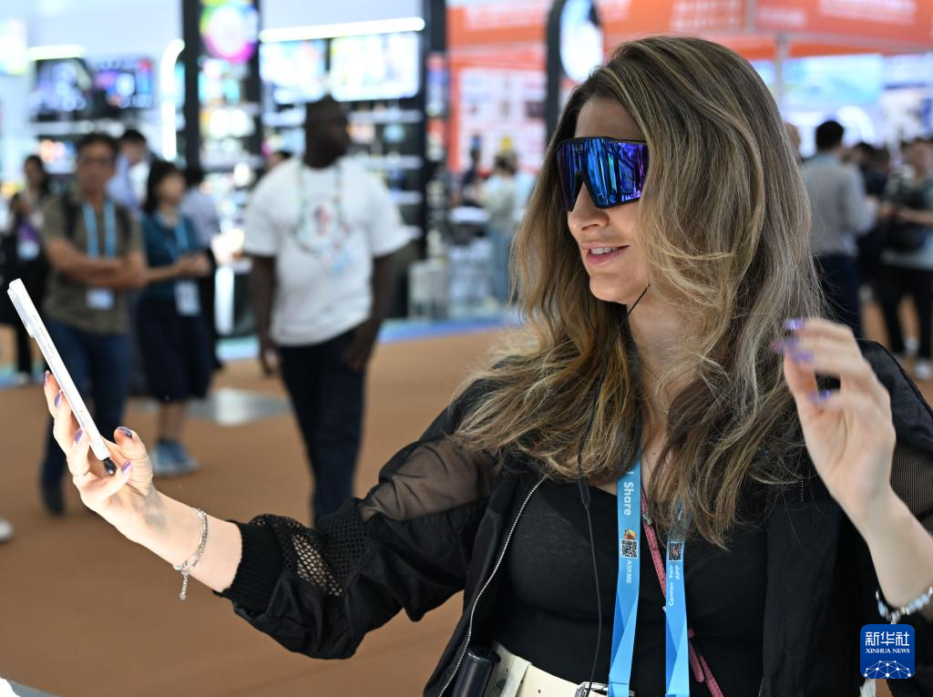4月15日,境外采购商在广交会上体验一款AI眼镜。