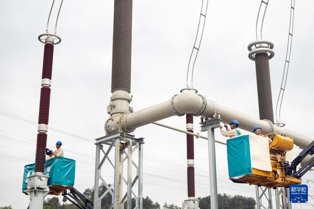 4月15日,检修人员在“疆电入渝”工程渝北换流站直流场及接地极区域检修。