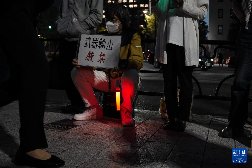 针对高市早苗政府计划近期修改“防卫装备转移三原则”及其运用指南,日本民众16日晚在东京的首相官邸前举行抗议集会,反对解禁杀伤性武器出口。