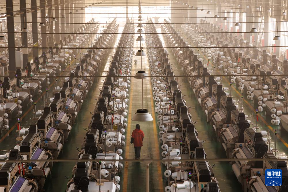 4月17日,在毕节高新技术产业开发区一家纺织企业内,机器开足马力全力生产。