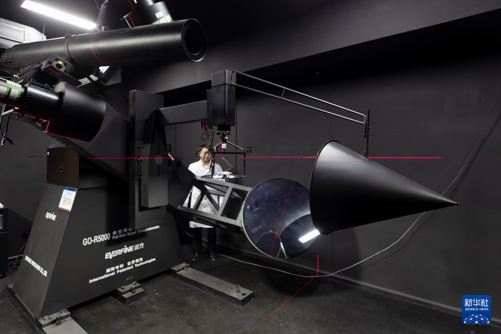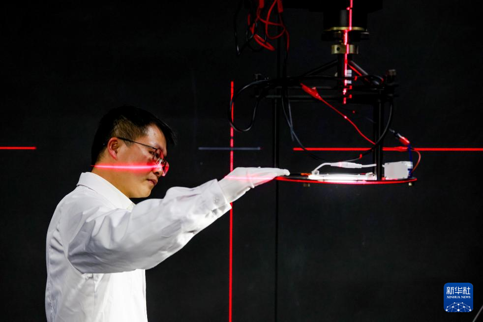 4月17日,技术员在贵州省毕节高新技术产业开发区的一家光学技术企业内对灯具光度性能进行检测。