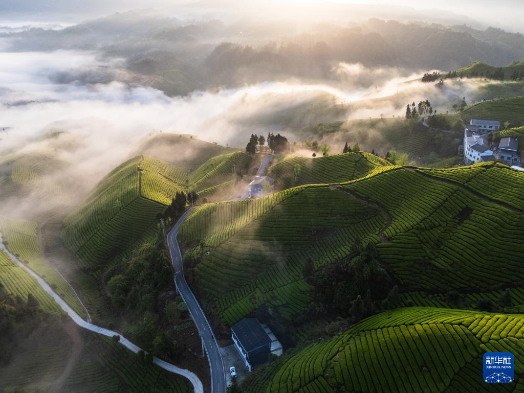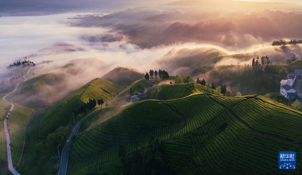 4月18日在湖北省鹤峰县走马镇升子村拍摄的木耳山茶园(无人机照片)。