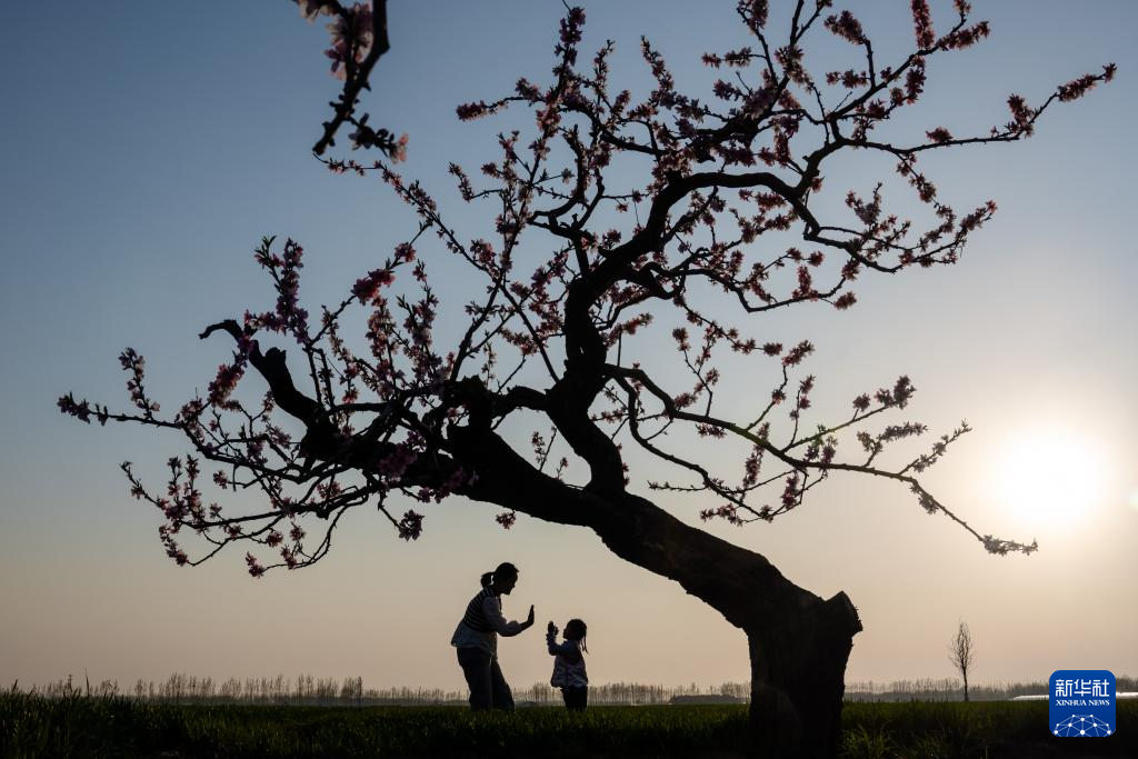 4月4日,在山东省淄博市高青县,一位母亲陪着孩子做亲子游戏。