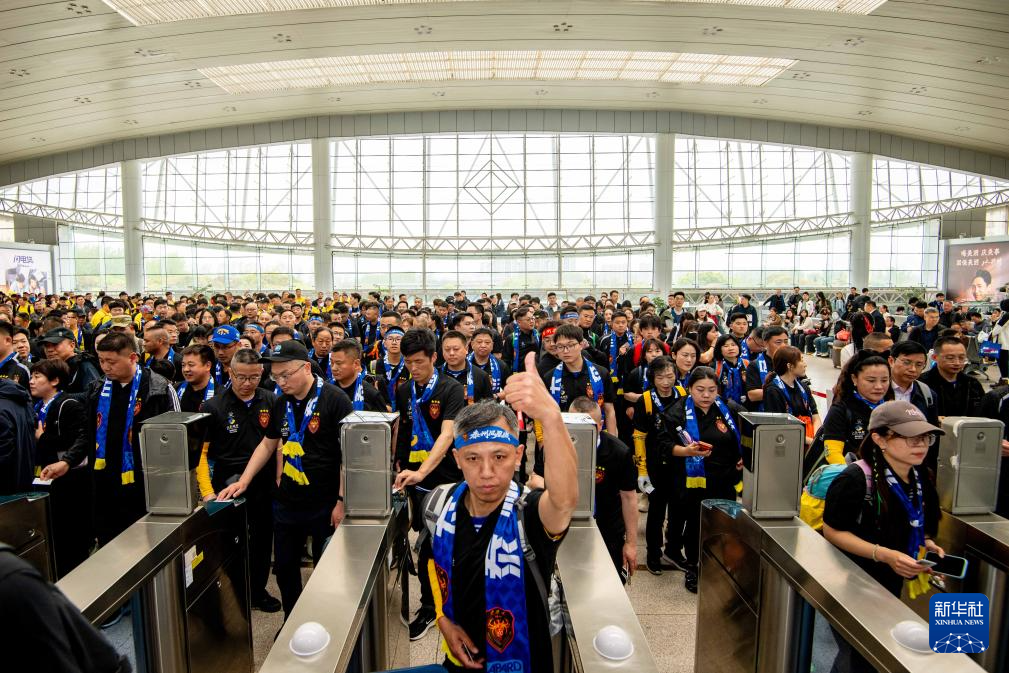 4月18日,2026江苏省城市足球联赛泰州队客场挑战徐州队,为方便球迷观赛,铁路部门开行泰州站往返徐州东站的“苏超”球迷高铁专列。