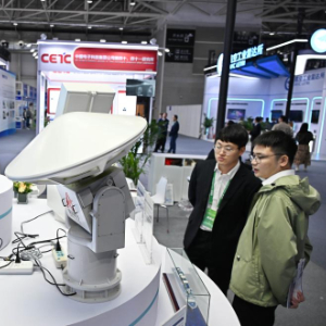 4月18日,观众在雷达未来大会展览区参观。
