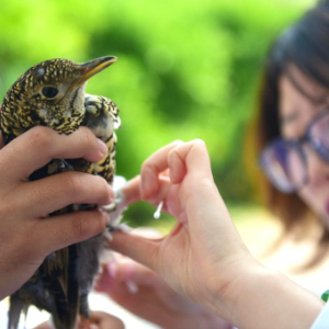 4月19日,沧州市野生动物救护中心工作人员为获救的国家二级保护动物虎斑地鸫进行体检。